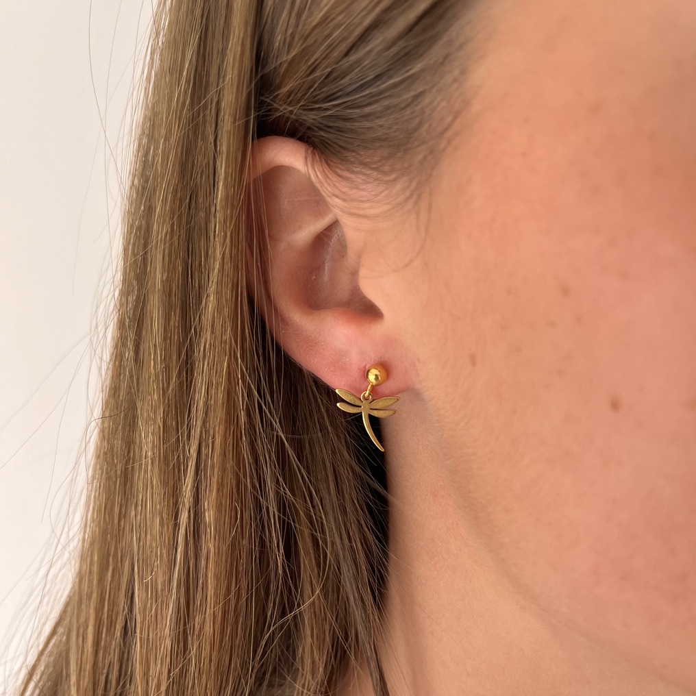 Boucles d’oreilles dorées libellule en acier inoxydable.