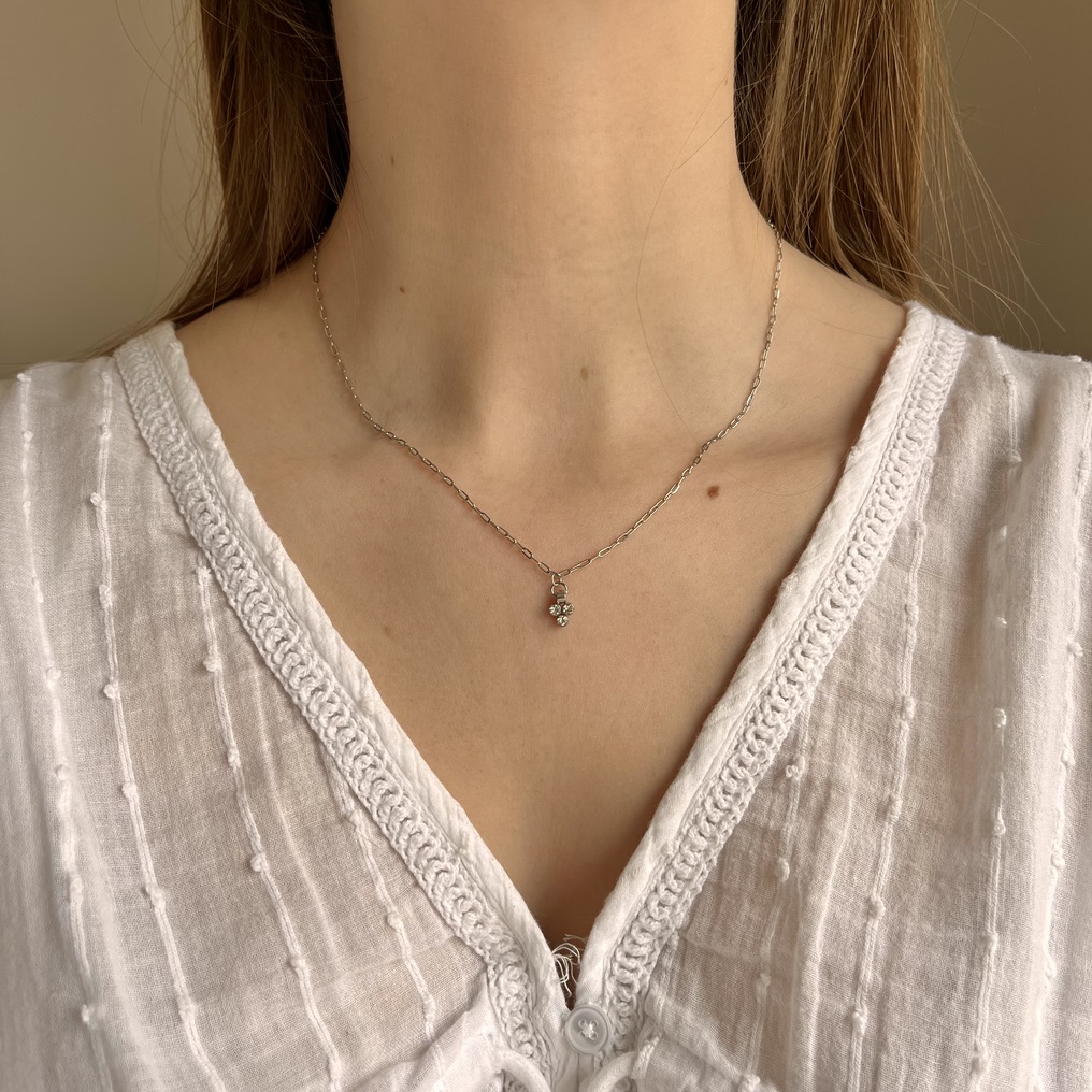 25,00 €Le prix initial était : 25,00 €.10,00 €Le prix actuel est : 10,00 €.Collier argenté en acier inoxydable de 37 cm + la chainette d’extension