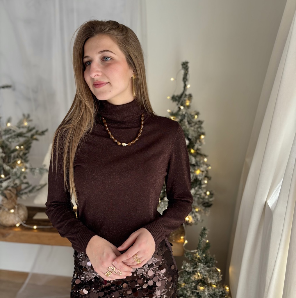 Pull à haut col près du corps marron avec des paillettes