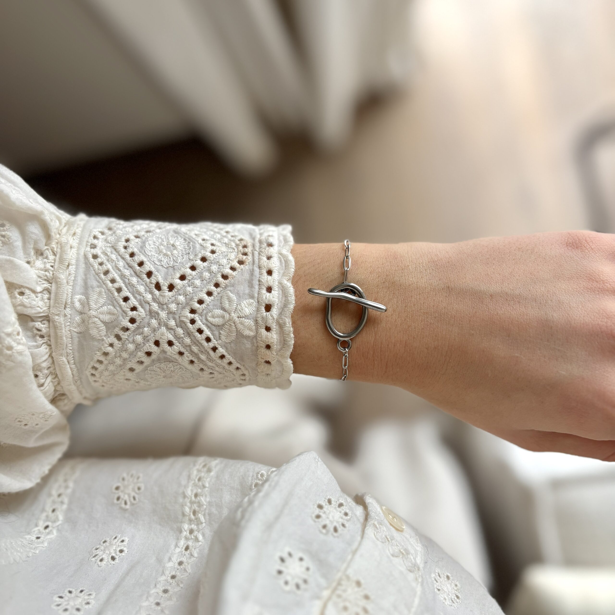 Bracelet argenté en acier inoxydable de 17 cm + la chaînette d’extension