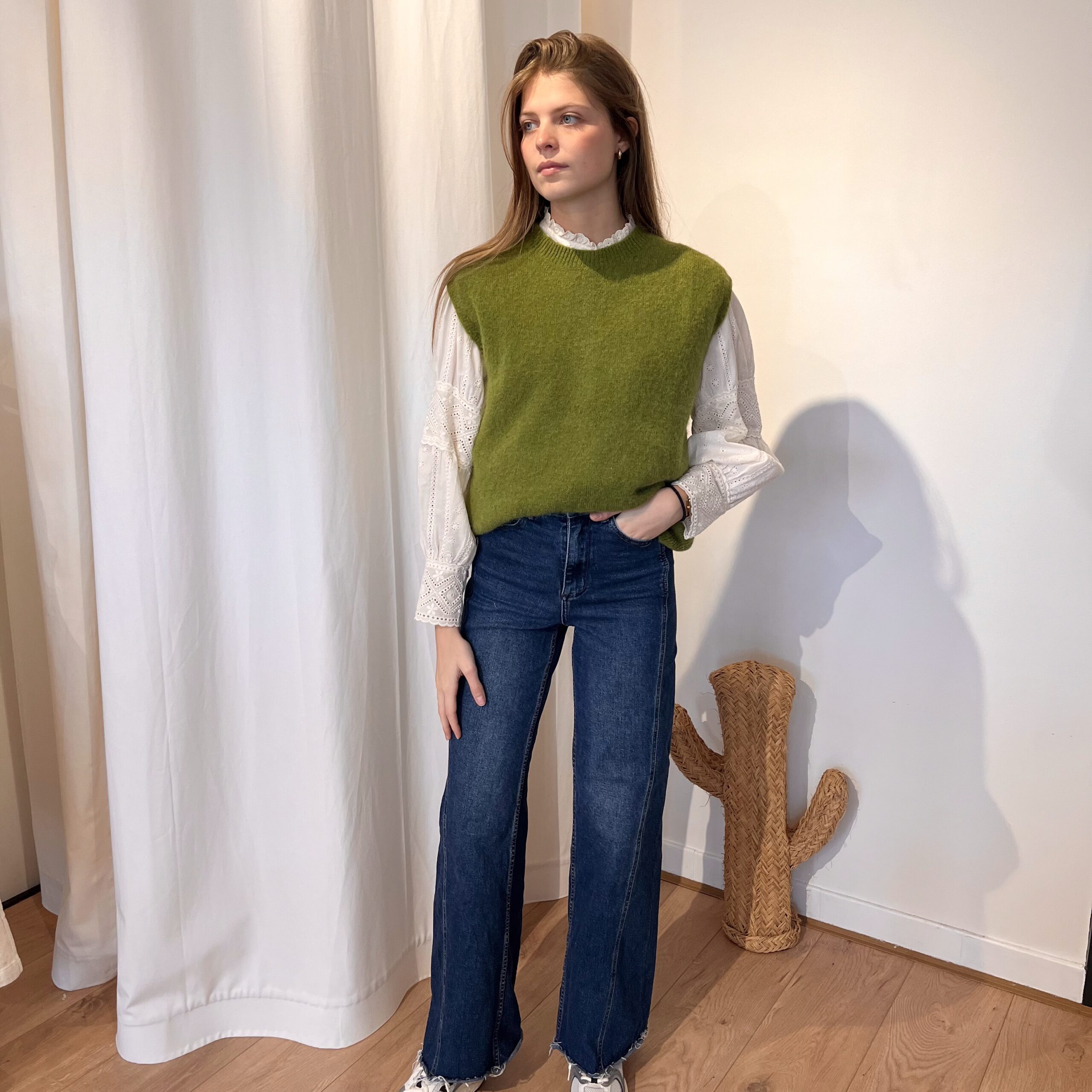 Pantalon fluide coloré avec des poches, un bouton et possible de mettre une ceinture