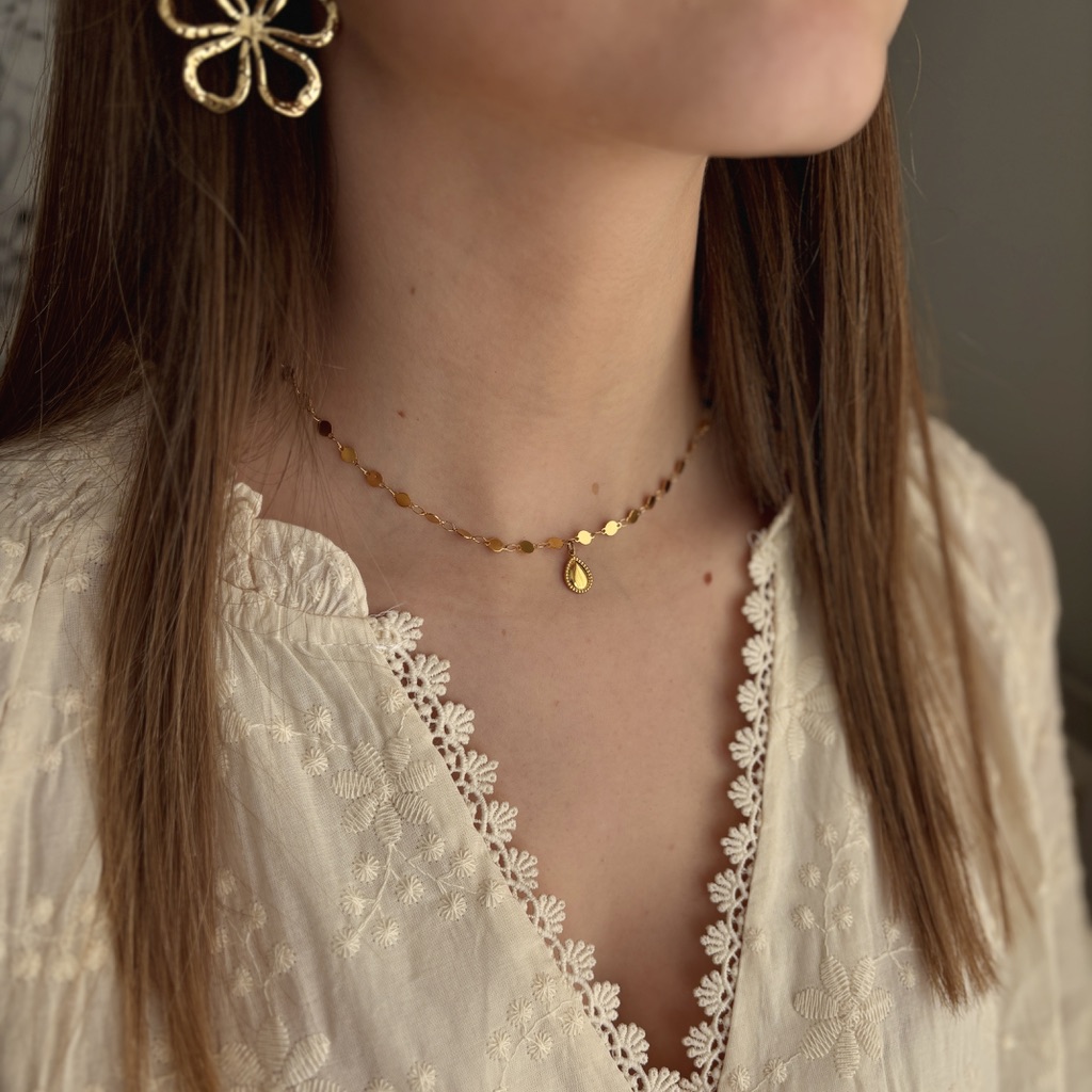 Collier doré en acier inoxydable de 36 cm + la chainette d’extension