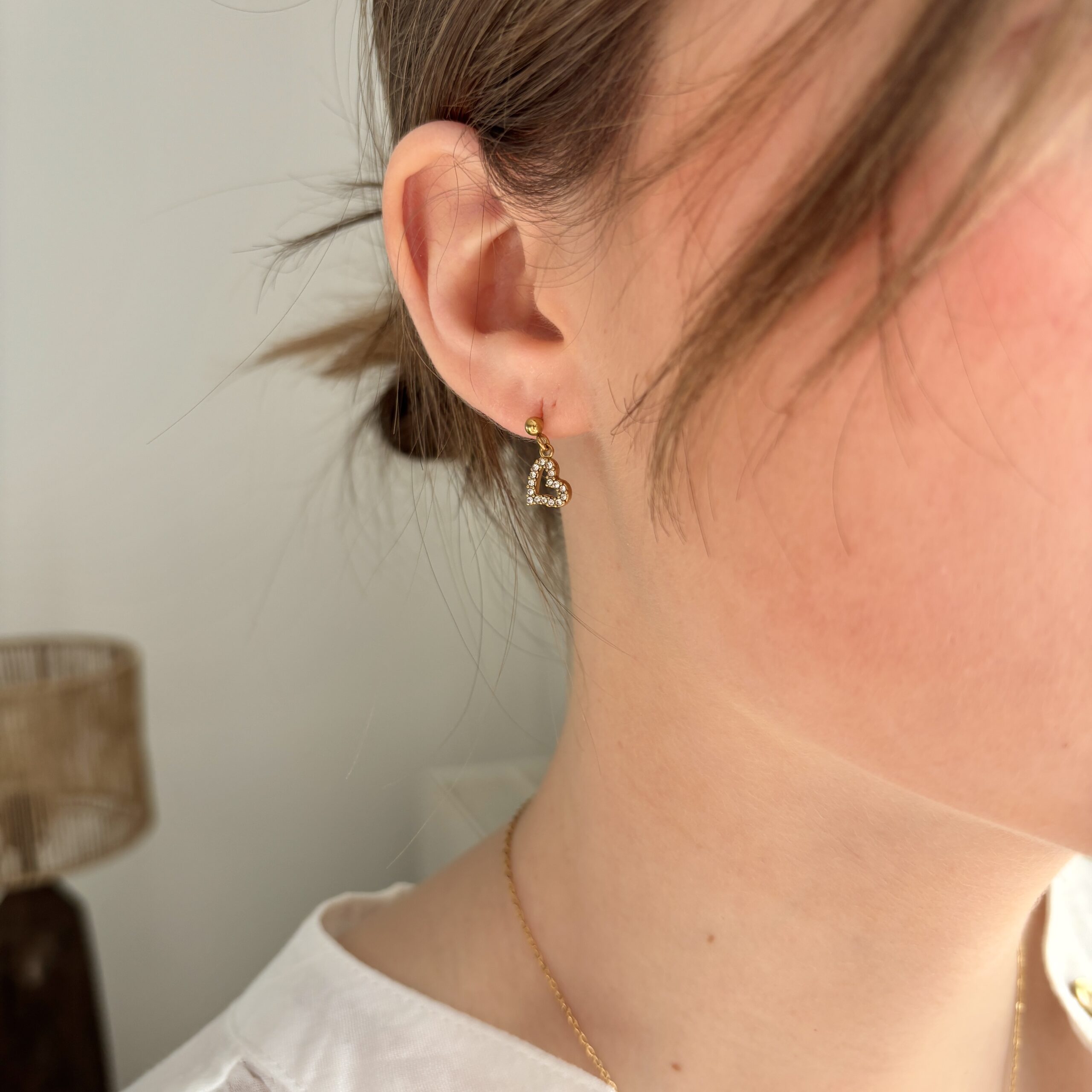 Boucles d’oreilles dorées en acier inoxydable avec des strass