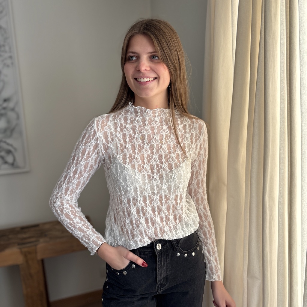 Haut transparent à dentelles blanche