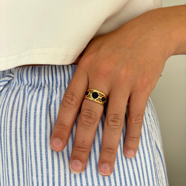Bague dorée réglable en acier inoxydable.