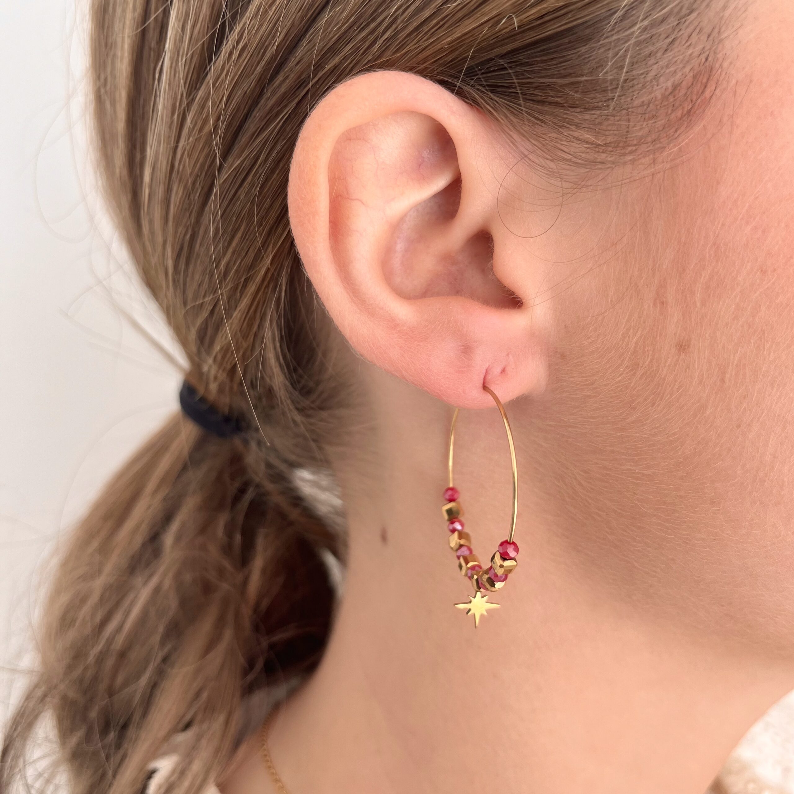 Boucles d’oreilles dorées avec perles dorées et rouge en acier inoxydable