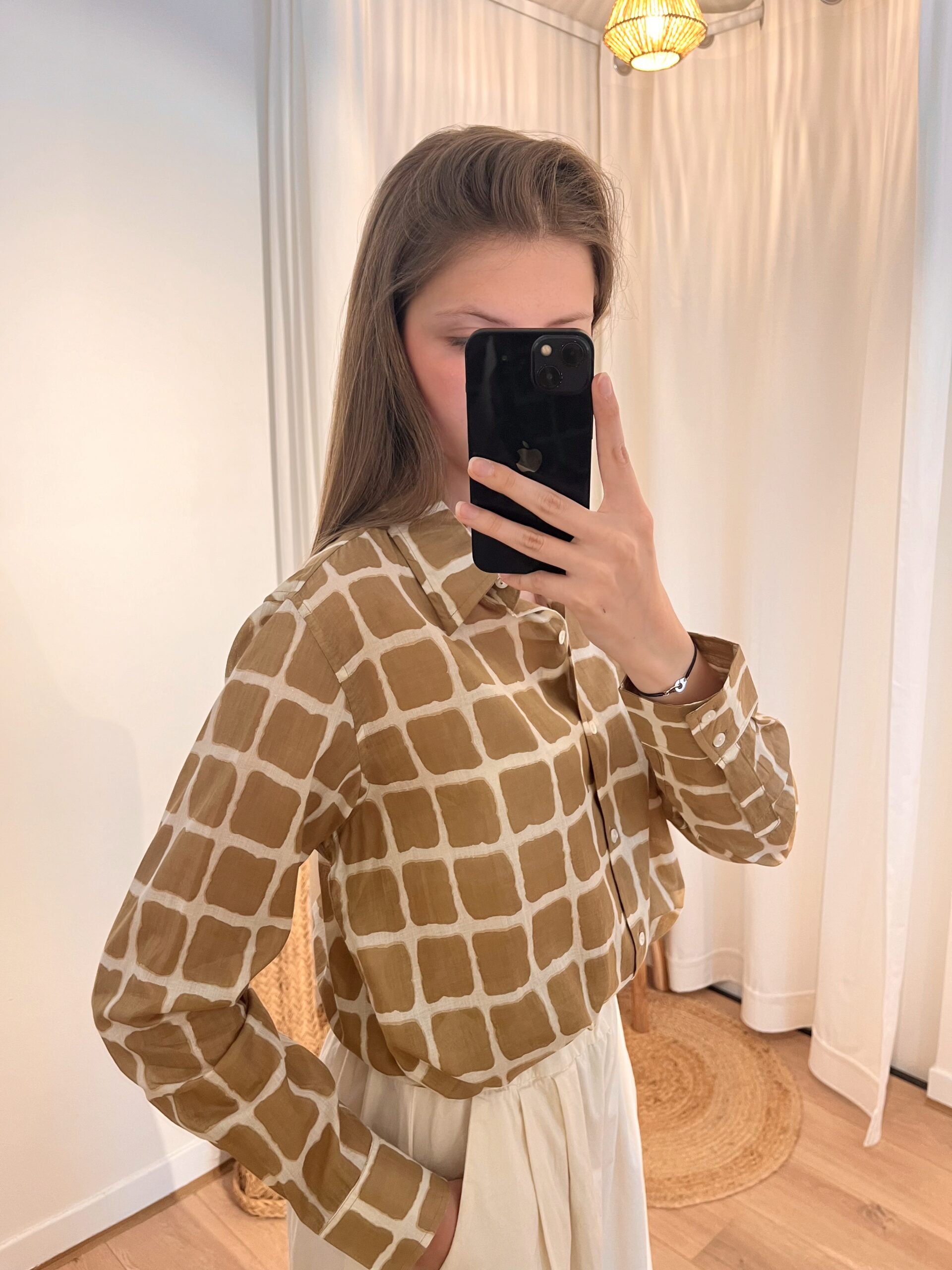 Chemisier kaki.