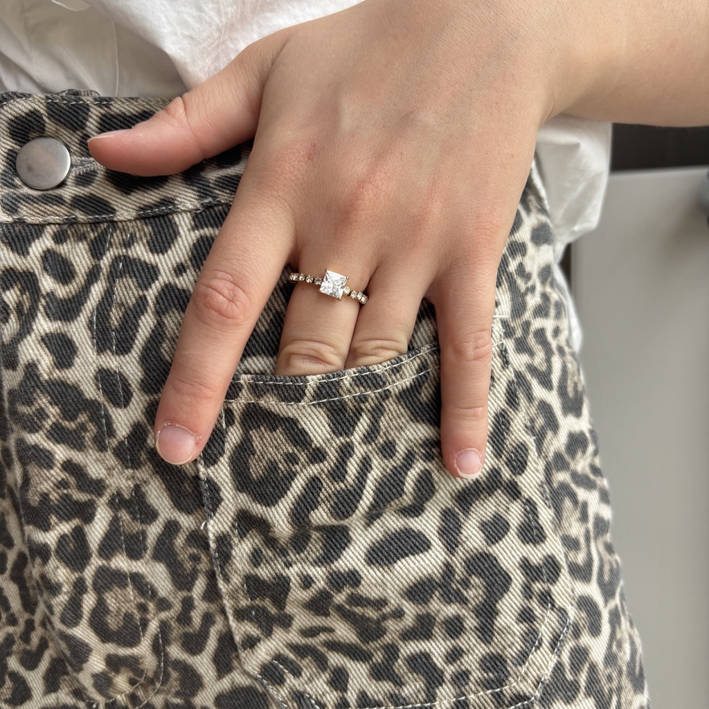 Bague doré à strass en acier inoxydable réglable