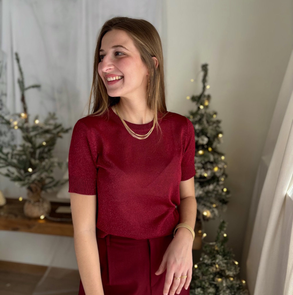 Pull à manche courte rose très doux, ne gratte pas
