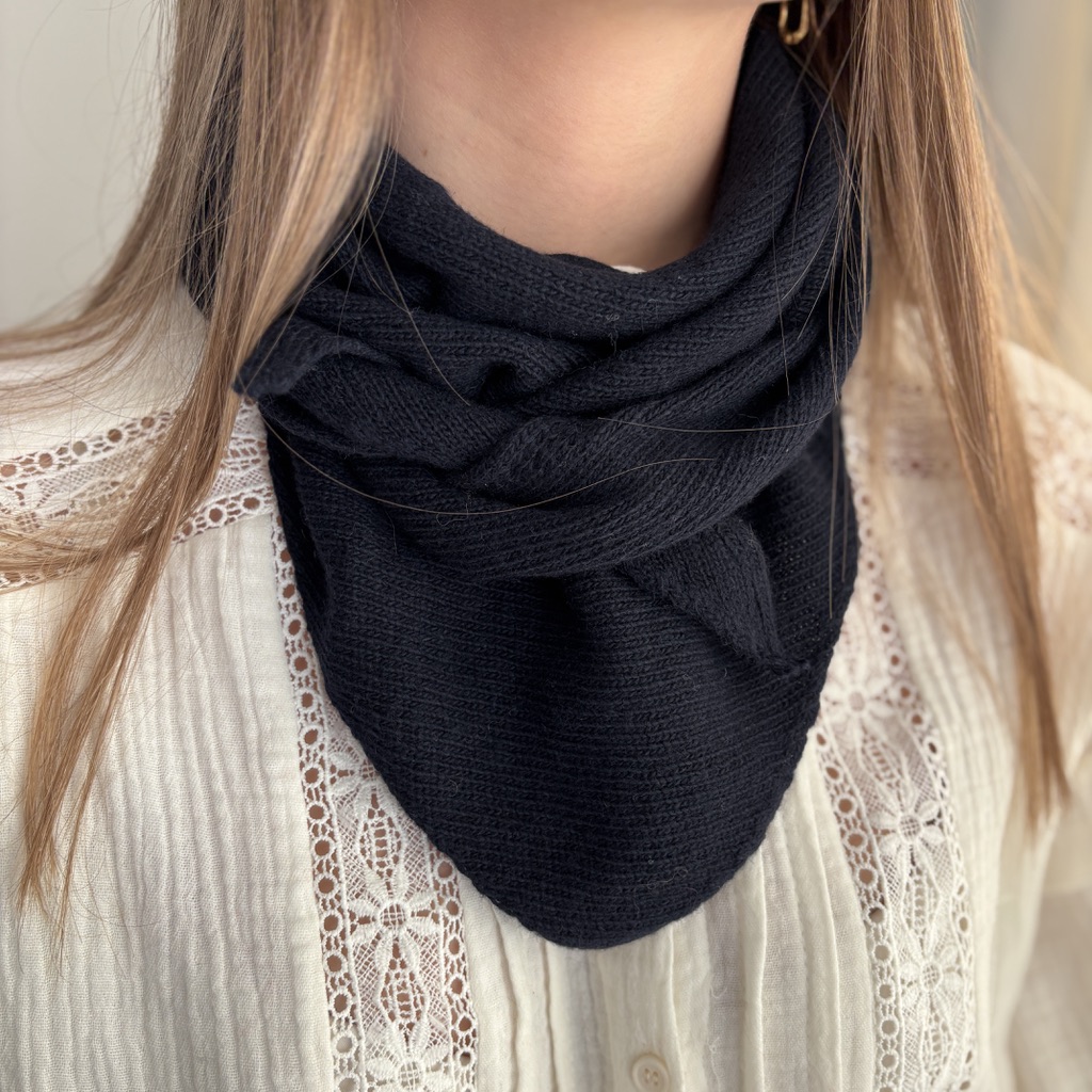 Foulard avec 10% de Cashmere et 30% de laine.