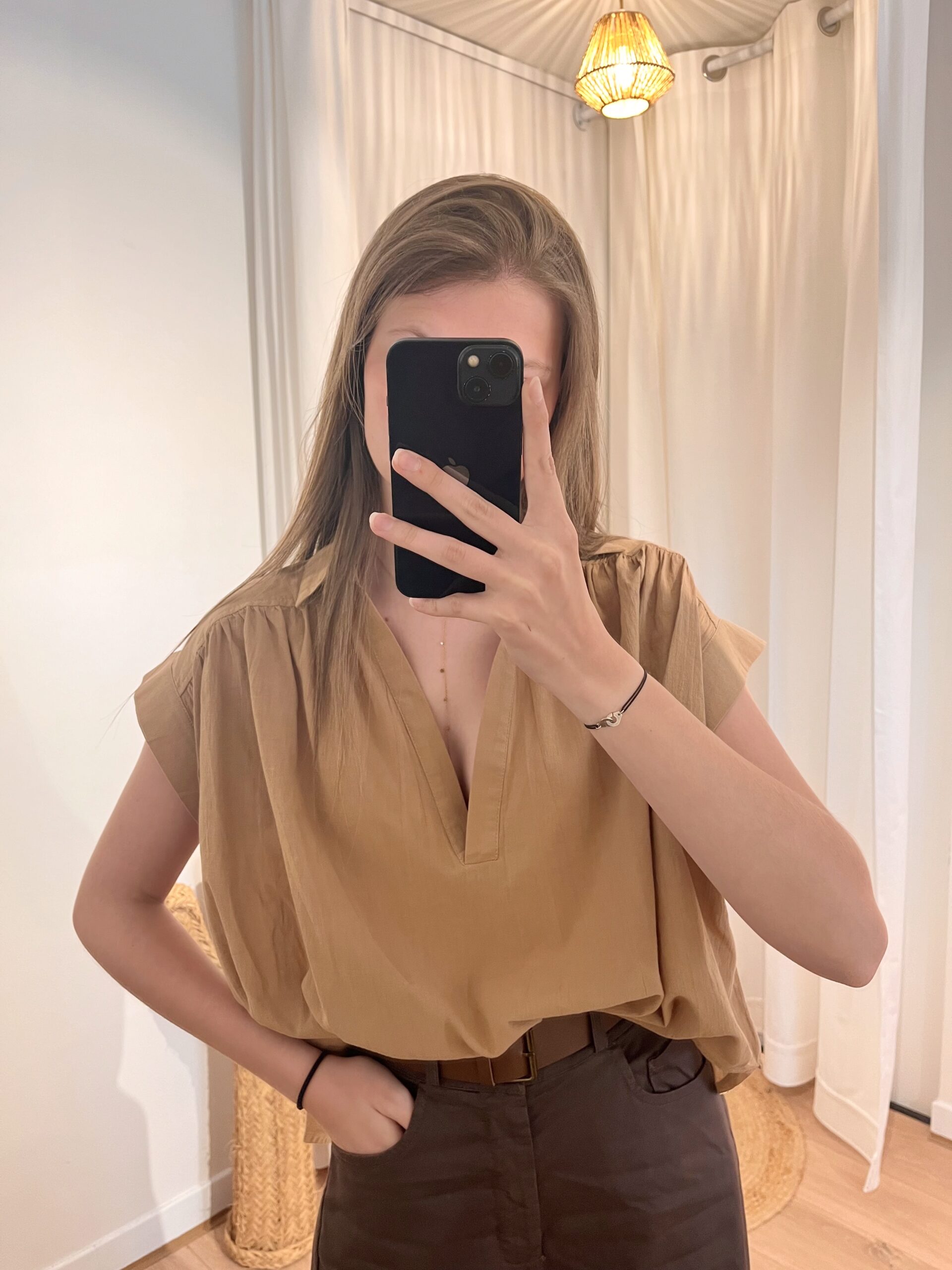 Blouse manches courtes camel.