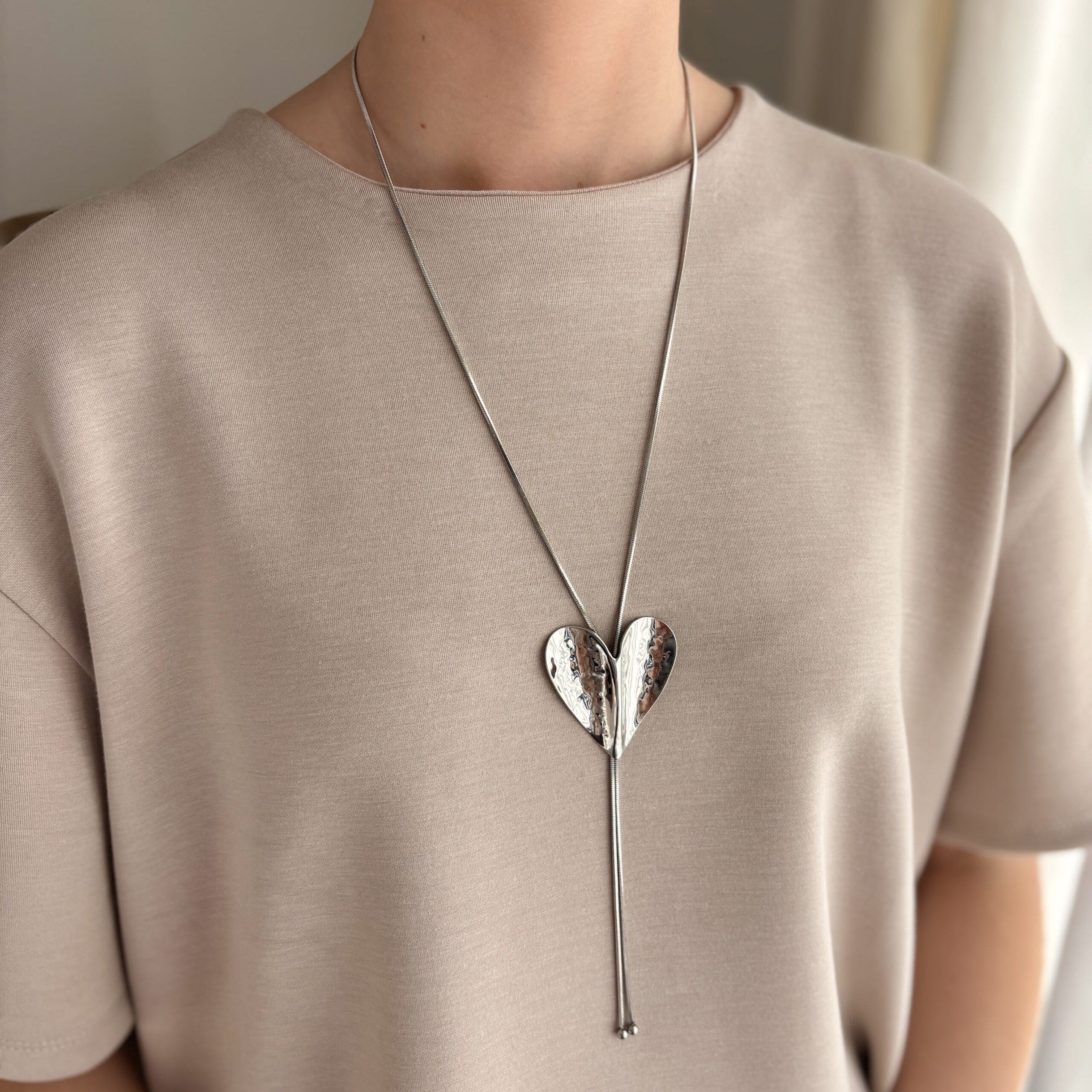 Collier argenté de +- 60 cm réglable en bougeant le cœur. Le cœur se glisse sur la chaine
