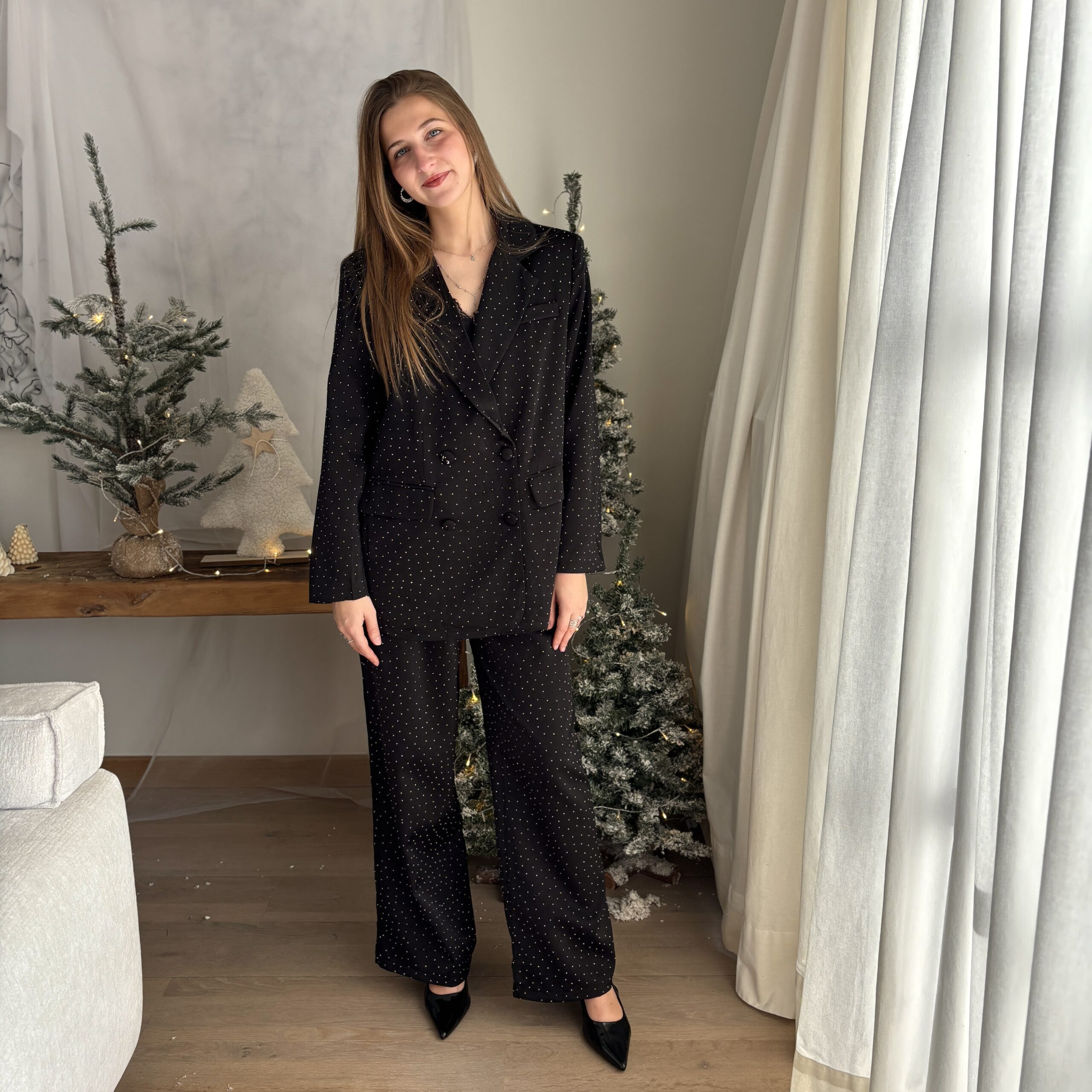 Ensemble à strass noir veste et pantalon.